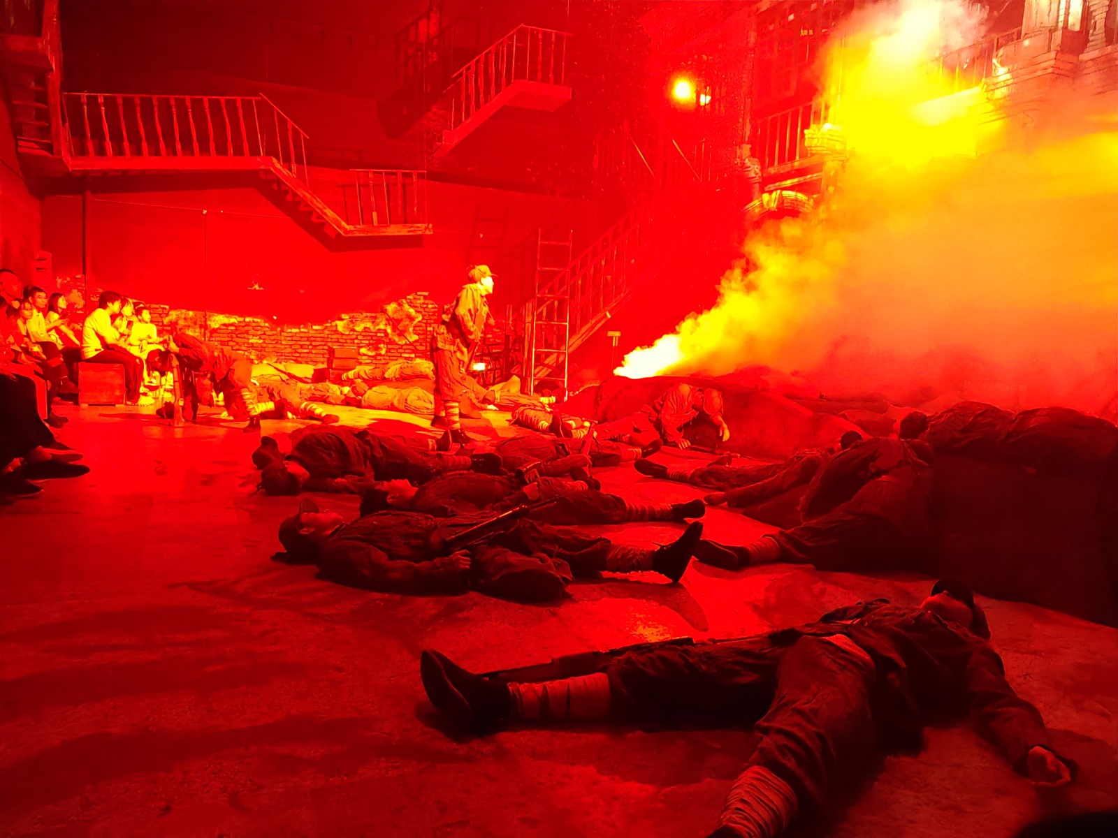 最后,大家一同觀看沉浸式演繹舞臺劇《石家莊·1947》,《石家莊·1947》采用沉浸式戲劇的表演形式,打造身臨其境的觀覽體驗,用鮮活的演藝去還原那段值得銘記的歷史。劇目總時長約60分鐘,講述了1947年石家莊解放前夕,地下工作者與國民黨之間一場緊張的情報戰,主要分為“車站·搜捕”、“荒草地·協力”、“正太·絕境”、“魔窟·生死”、“黎明·總攻”等五幕演出內容,通過戲劇、歌舞、跑酷、舞美燈光音響等表現手法,向觀眾呈現了我黨地下工作者為了將情報傳遞出城所做出的無數努力和犧牲。該劇通過舞臺和演出,將公司黨員干部帶回那個彌漫著硝煙的年代,去親歷那段殘酷的斗爭,去感受那些赤誠的夢想和熱血,去見證石家莊的解放。